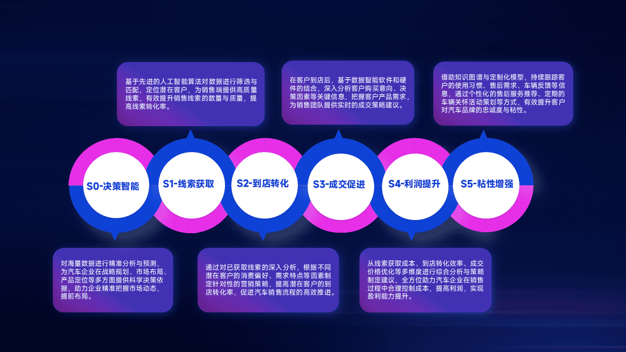 通过拓宽潜在客户来源、、优化线索分配并提高到店转化率,,,,以增强销售效率。。。同时,,,,利用线索数据不断优化分析模型,,,有效提升转化率,,,,扩大营销影响力。。。